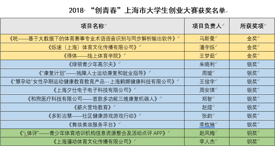 自2017年10月上海体育学院第九届竞攀杯创业计划竞赛暨2018年全国创青春大学生创业计划竞赛校内选拔启动以来,经过历时近8个月的精心筹备与组织,全校学生踊跃参与,通过专家指导、计划书筛选、公开论辩等环节,经过初赛、复赛、决赛的层层选拔,综合考量作品,最终根据专家评审意见从全校申报的98件作品中遴选14件优秀作品参加市赛。