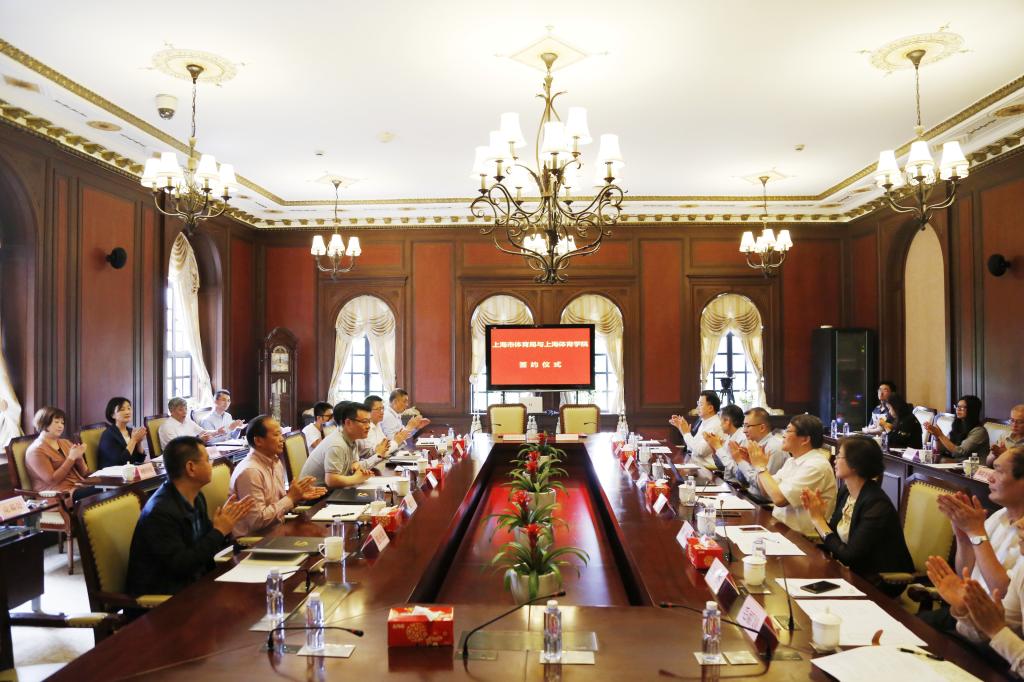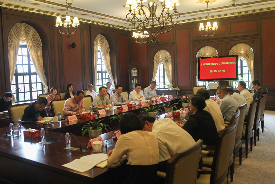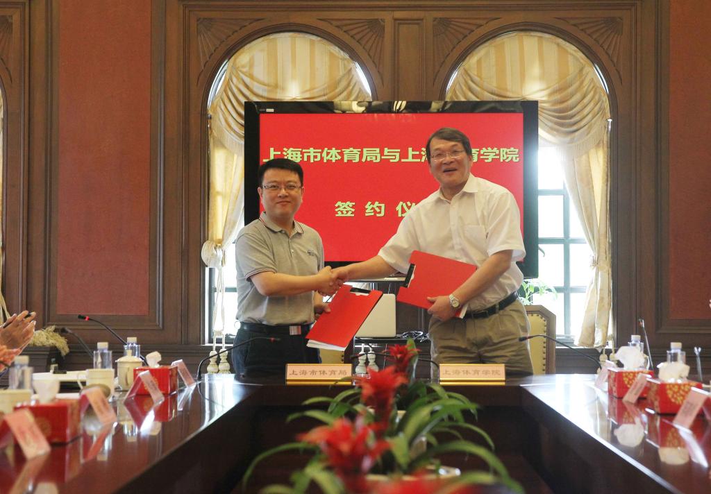 上海市体育局党委书记、局长徐彬,上海体育学院党委书记李崟出席签约仪式并讲话。徐彬与我院党委副书记、院长陈佩杰分别代表双方单位签署了协议。陈佩杰介绍了学校近期发展情况,市体育局副巡视员杨培刚介绍了合作协议主要内容。仪式由市体育局党委副书记陆檩主持。
