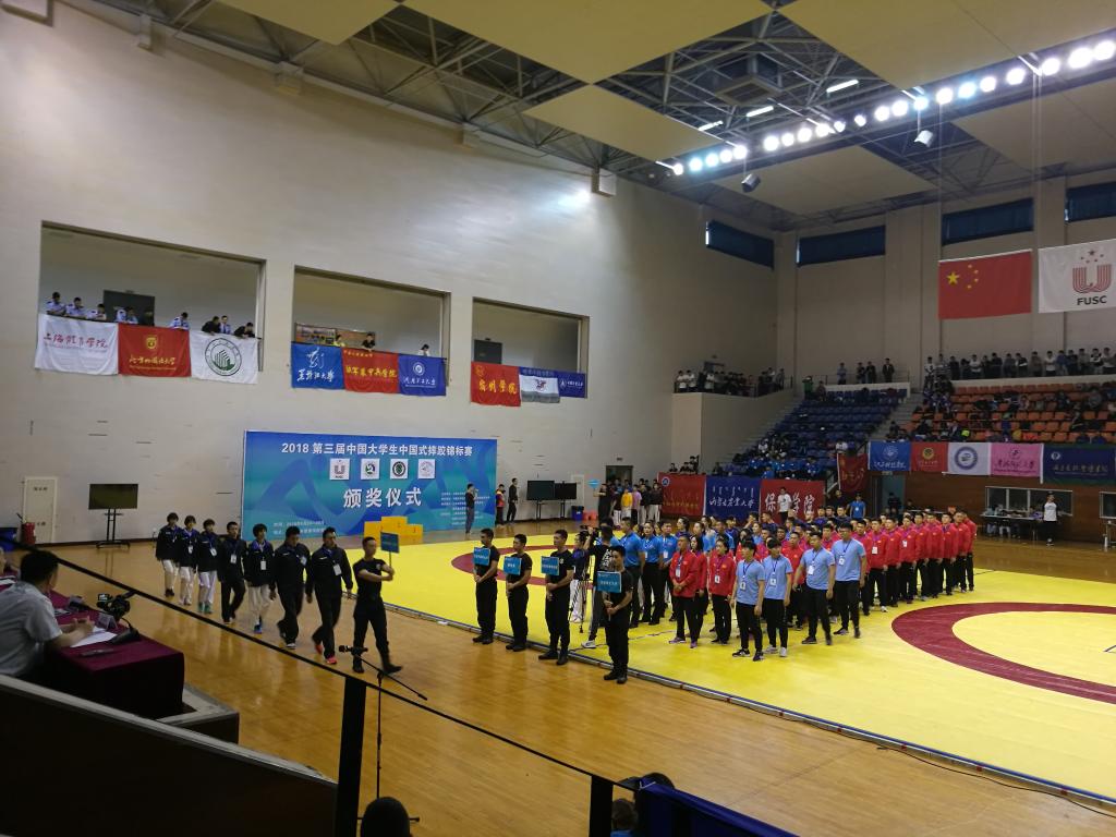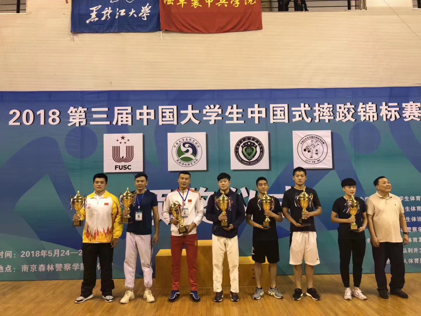 本网讯 2018年第三届中国大学生中国式摔跤锦标赛于5月24—28日在南京森林警察学院举行。红足一1世体育教育训练学院共有九名学生参加了本次乙组的比赛,经过两天的激烈角逐共获得11个冠军、4个亚军、2个第三名、4个第五名的优异成绩。其中,詹萌、景丹丹分别获得女子52公斤级的冠军和亚军,唐玮、张碗碗分别获得女子56公斤级的冠军和亚军,周艳获得女子60公斤级的亚军,孙喜超获得男子82公斤级的冠军,高鹏获得男子-100公斤级的冠军,马翁鑫楠获得男子56公斤级的亚军。