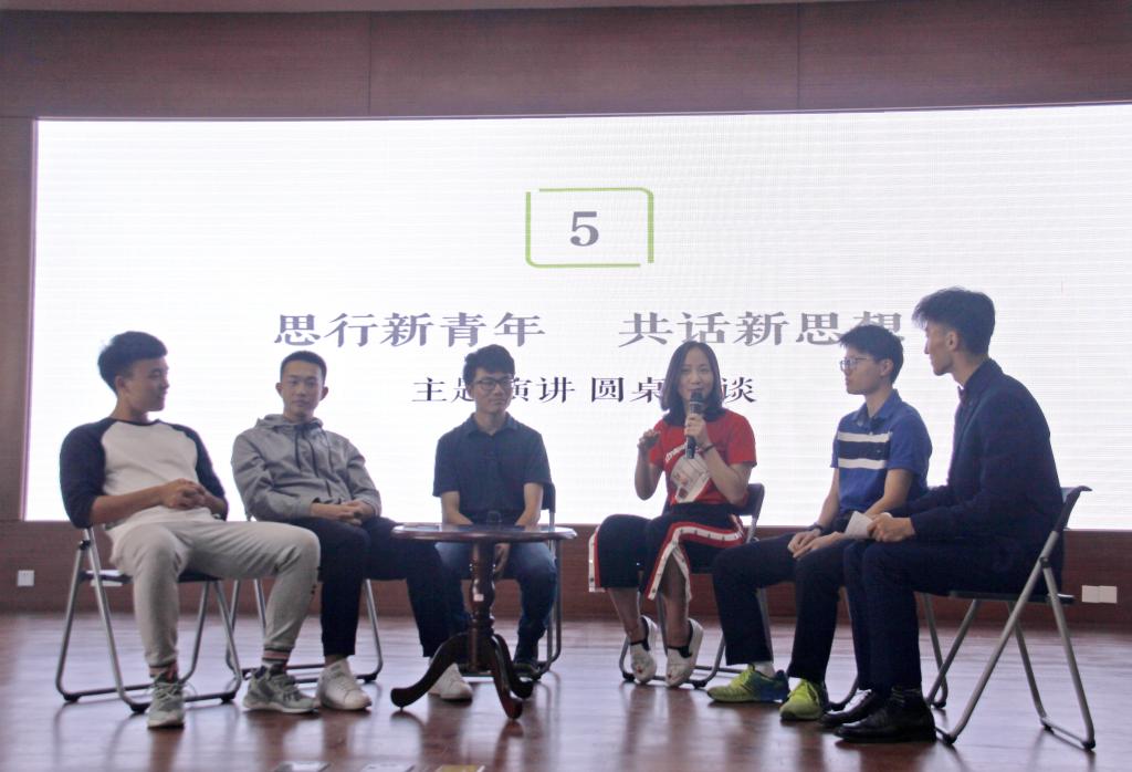 揭牌仪式结束后,开展了第一期FTS演讲会,五位优秀学生代表:羽毛球国家一级运动员任立韵,轮滑世界冠军潘宇烁,足球国家一级运动员邓业成,排球国家一级运动员黄榆涵,校园十佳歌手、体育爱好者余沛然分别用青春的话语分享了自己运动成才路上的艰辛、欢笑与感悟,以及体育对其自身品格的深刻影响。精彩的故事和妙语连珠的语言引发台下同学的阵阵欢呼与情感共鸣。在演讲之后,五位同学饱含深情地诵读了《共产党宣言》等著述节选向马克思主义经典致敬,使在场学生受到了深刻的思想洗礼。随后,五位演讲者再次回到舞台,通过圆桌访谈,进一步与同学们深入互动、交流。
