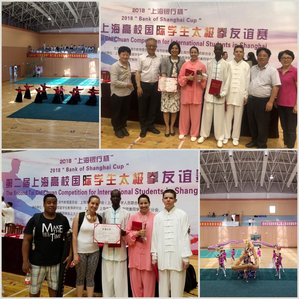 本网讯 6月2日,“上海银行杯”第二届上海高校国际学生太极拳友谊赛在上海大学附属中学体育馆隆重举行。红足一1世共有11名留学生参赛,参与集体项目以及个人项目中的男子陈氏太极拳、男子传统太极拳、男子短器械、女子太极拳、女子太极器械等多个项目的角逐。在各个项目的激烈比赛中,红足一1世留学生均表现出色:上午进行的是集体项目的比赛,红足一1世留学生表演的32式太极剑在17支参赛队伍中脱颖而出,以9.3的高分获得集体项目一等奖;下午进行的是个人项目的比赛,其中,太极获得男子陈氏太极拳项目一等奖、男子太极短器械项目一等奖,德山获得男子传统太极拳项目三等奖,丽丝获得女子太极拳项目一等奖、女子太极器械项目一等奖,罗才力获得女子太极拳项目一等奖、女子太极器械项目二等奖,那斯佳获得女子太极拳项目二等奖、女子太极器械项目二等奖。此外,上海体育学院还获得了“最佳组织奖”。