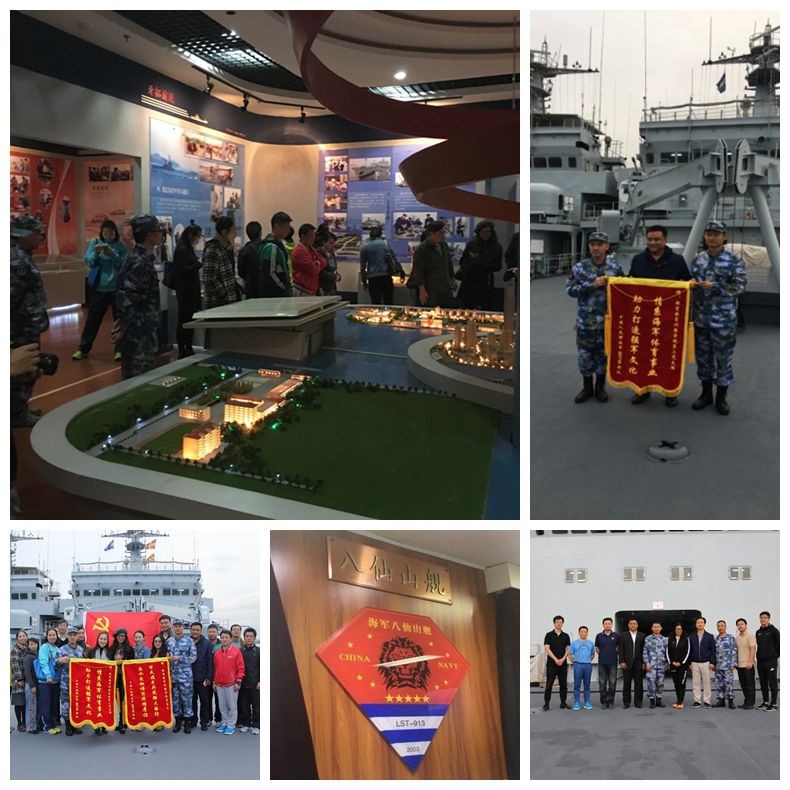 2018年,体育教育训练学院教工党支部组织党员教师多次共赴区域内海军部队军营,与“九华山舰”和“八仙山舰”党支部共同开展了包括“军民携手共筑强大国防、鱼水交融谱写深情厚谊”、“推进军民融合,体育科技助力高水平军事训练”等在内的多次主题活动,期间受邀参观了海军军史馆、观看了海军纪录片和《登陆尖兵》等宣传片,活动进一步促使支部党员深切感受到“奉献、尽责、全心全意为人民服务”的人民子弟兵精神。