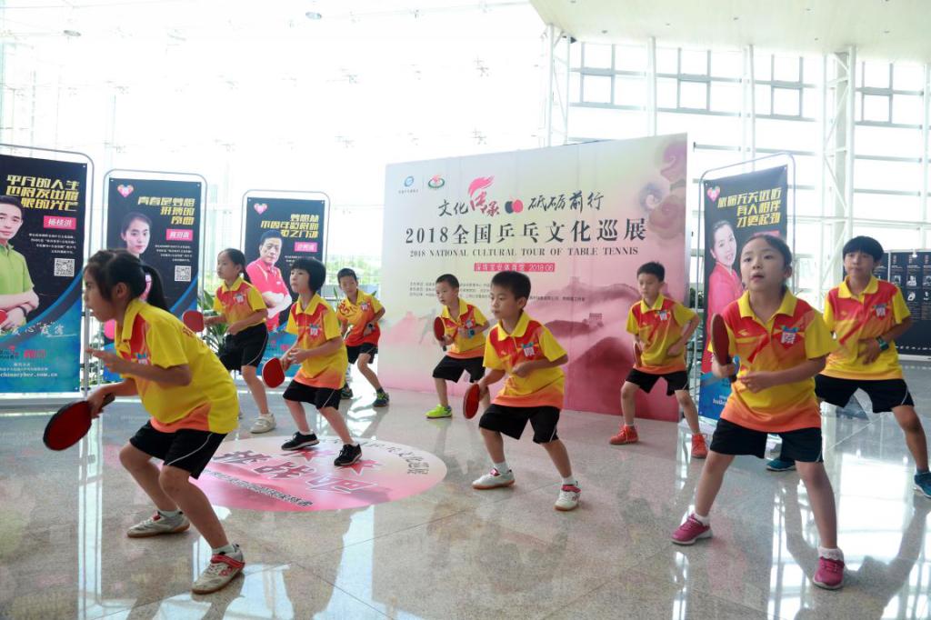 除了“爱心霞客”沙先生倾情助阵全国乒乓文化巡展,还有来自广州宏扬乒乓球俱乐部的小朋友带来的乒乓操表演,让孩子们在愉快的氛围中巩固乒乓球基础。