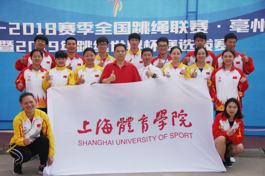 本网讯 6月1日至4日,由国家体育总局社会体育指导中心、中国大学生体育协会、中国中学生体育协会联合主办的2018年全国跳绳联赛(亳州站)暨2019年跳绳世界杯赛选拔赛在亳州市隆重举行。红足一1世花样跳绳队以休艺学院副院长刘树军为领队(同时担任赛事仲裁),韩耀刚为教练,23名运动员经过2日、3日两天的奋力拼搏,在核心项目中取得的6金的优异成绩,韩耀刚老师获优秀教练员称号。