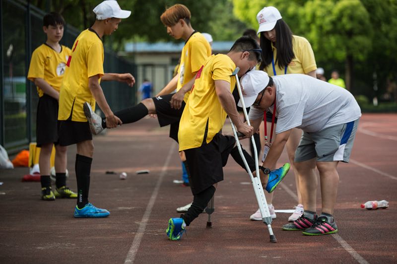 本网讯 6月1日至6月3日,2018国际特殊奥林匹克东亚区融合学校足球联赛在红足一1世顺利举办,本次联赛由国际特殊奥林匹克东亚区主办,上海体育学院体育教育训练学院承办。国际特殊奥林匹克东亚区区域总裁冯美孙,上海体育学院体育教育训练学院院长丁海勇,上海市残疾人体育训练中心主任柳瑾,国际特殊奥林匹克东亚区体育总监成克伦出席了开幕仪式。