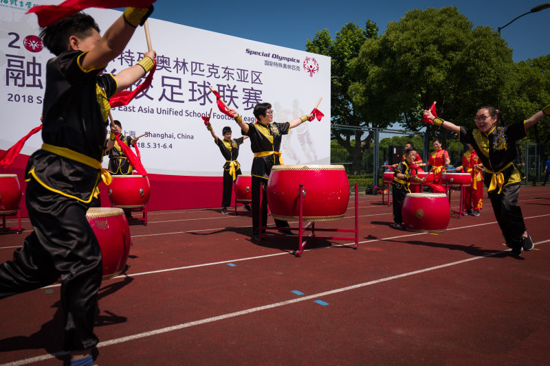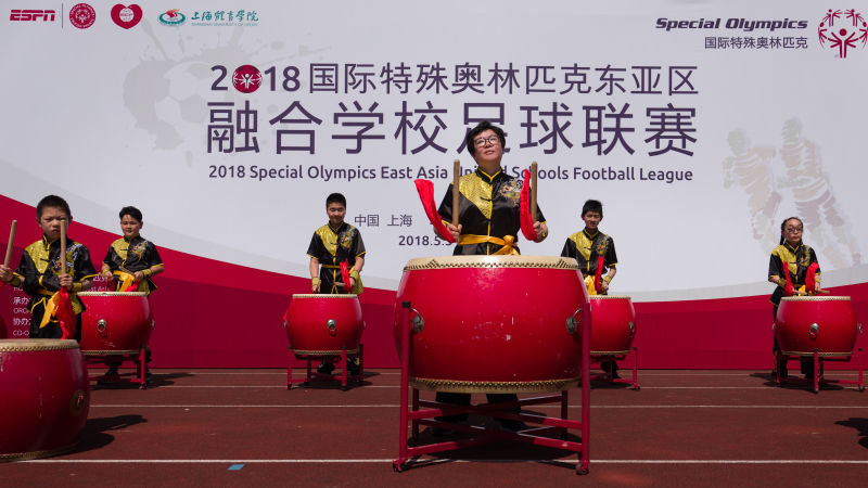 在足球联赛开幕式上,丁海勇院长对各位运动员的热情参与表示热烈的欢迎;冯美孙总裁对上海体育学院长期以来对特殊奥林匹克事业的支持表示由衷的感谢,来自上海浦东辅读学校的同学们带来了精彩的大鼓表演,为绿茵场带来了热情与欢乐。