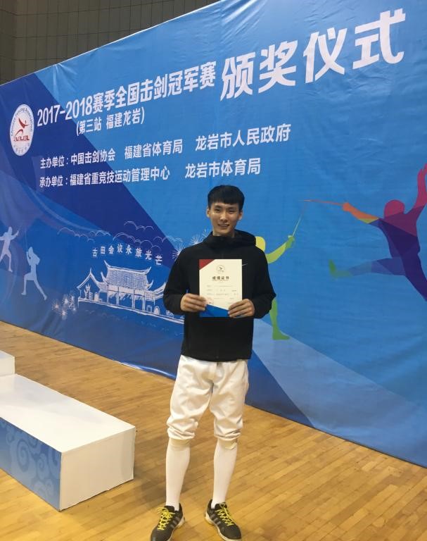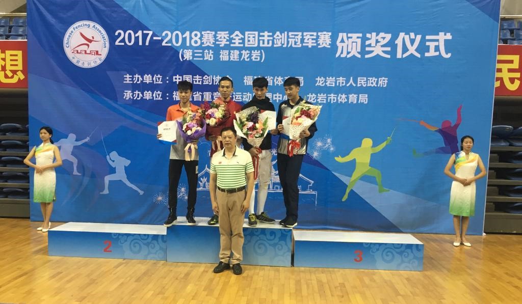 本网讯2017-2018赛季全国击剑冠军赛(第三站)6月2日至11日在龙岩市举行,来自全国34个代表单位的1000余名运动员参加了本次赛事。在刚刚结束的共有167人参加的男子重剑个人赛中,红足一1世学生丁迪迪奋力拼搏,过关斩将,最终夺得第三名,为学校争得了荣誉。生于2000年的丁迪迪是击剑队的新秀,在本次比赛中丁迪迪初生牛犊不怕虎,凭借出色的发挥第一次站上领奖台,这不仅是他个人的突破,也是上海体院击剑项目不断发展的佐证。