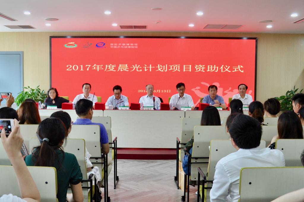 本网讯 6月13日下午,2017年度“晨光计划”项目资助仪式在国际乒联博物馆和中国乒乓球博物馆三楼多功能厅举行。十届上海市政协副主席、上海市教育发展基金会理事长王荣华,基金会常务副理事长王奇,国际乒联副主席、上海体育学院副院长施之皓,上海体育学院副院长王兴放,上海市教育委员会科技处副处长龚晋,基金会理事长助理王明复,秘书长张宏莲出席仪式并为“晨光计划”项目承担人颁发证书。仪式由常务副理事长王奇主持。
