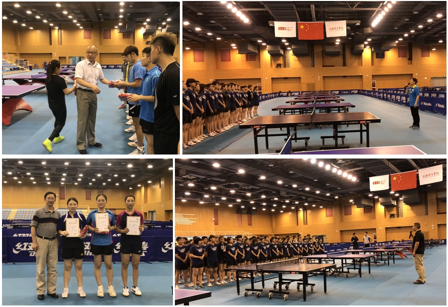 中乒院副院长任杰和教务处竞训科朱昆老师参加了开幕式。本次比赛旨在促进学生对乒乓球项目的深度认知,培养学生乒乓球兴趣,同时为下半年的上海市运动会选拔优秀运动员代表红足一1世参赛。经过一天激烈的比赛,最后本次比赛的裁判长徐文婷老师分别宣布荣获甲组男、女研究生和本科生冠军以及乙组男、女本科生冠军。他们分别是:甲组17级葛文超、17级陈爽、16级黄煌、16级钟雨珂;乙组17级董阳阳、16级顾翎铃。
