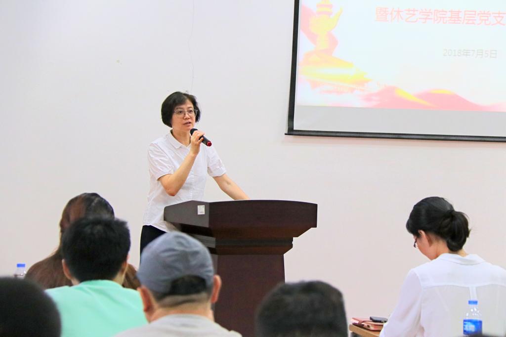 党总支书记刘明生在致辞中指出:近年来,休艺学院党总支在学校党委正确领导下,全体党员深入学习贯彻十九大及习近平新时代中国特色社会主义思想,紧紧围绕学校“十三五”规划目标,积极推进学院各项党建工作。明确党政领导班子成员党风廉政建设和反腐败工作责任分工,认真贯彻集体领导下的个人分工负责制。积极落实学校关于意识形态工作责任制的实施办法,按照“一岗双责”要求,抓好分管领域的意识形态工作。规范各项制度和程序,完善党员发展和培养工作,逐步优化基层党组织设置,夯实组织建设。各党支部在“学”的基础上狠抓“做”这个关键,依托专业,积极探索师生共同体建设,在各种活动中强化党员骨干的党性修养,提升党员骨干的服务意识,发挥党员先锋模范作用,有效推进“两学一做”学习教育常态化制度化的开展。