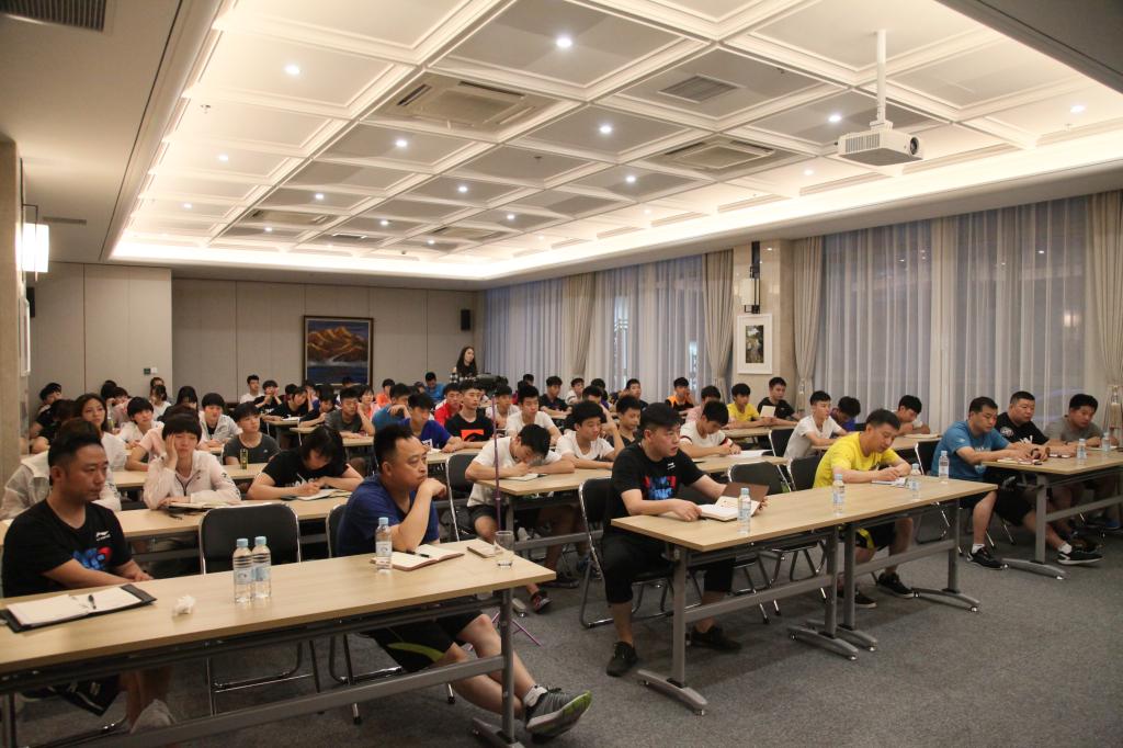 徐寅生从思想和技术两个方面对队员们进行勉励,希望大家在思想上发扬风格,以祖国的利益为重,发扬集体主义精神,通过回顾中国乒乓球发展的历史以及容国团、邓亚萍、刘国正等优秀运动员的事迹鞭策大家要懂得感恩和付出,勇于担当敢于拼搏。在技术上,结合自己多年的经验和思考,解释了主动进攻和被动相持的关系,深刻诠释了“女子技术男性化”的标准,并鼓励运动员们在技术上要勇于创新和突破,并学会辩证的看待问题。徐寅生的讲话幽默诙谐,深入浅出,近三个小时的时间里大家聚精会神,笑声掌声不断,让大家受益匪浅。
