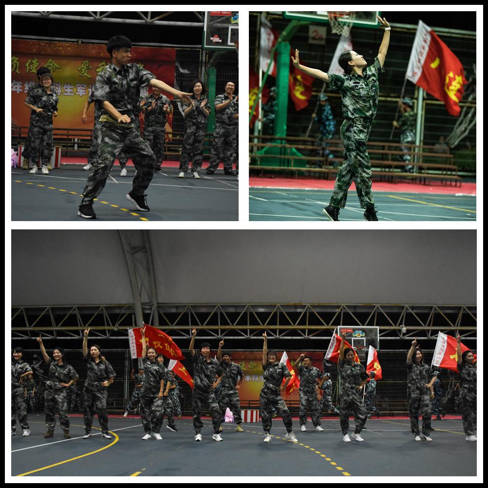 各连队表演结束后,教官们表演的《假如战争今天爆发》将红歌会推向了高潮。平日里教官给大家的印象都是严肃严厉的,但今天大家看到了教官除了“稍息、立正”,也能唱出嘹亮的歌声。