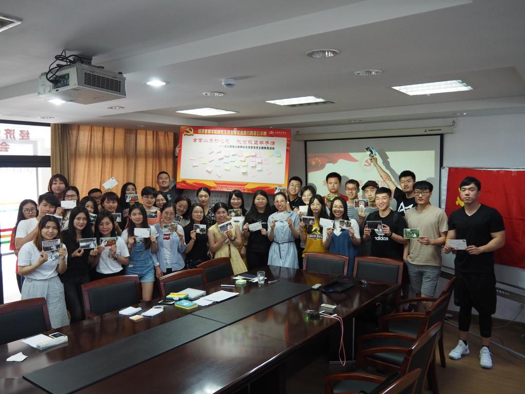 经济管理学院研究生党支部在七一前夕,结合连续11年开展的云南砚山暑期社会实践活动,开展了“全面小康初心志,脱贫攻坚学子情”云南砚山暑期社会实践党员主题教育活动。活动以云南砚山暑期社会实践经历和党员成长分享为主题,通过“十九大精神”学习分享、“山河不倒,爱心常在”主题分享、“不忘初心跟党走,集聚脱贫攻坚正能量”感悟分享、“18再出发,滇沪携手行”以情续爱心、“精准识别、精准帮扶”践行践诺等形式,深刻领会新时代中央重大决策部署,引导党员切实增强不忘初心跟党走的自觉性、坚定性,强化党员初心使命担当。