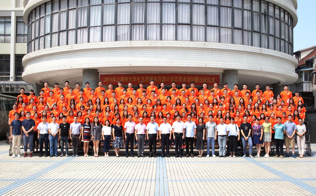 本网讯 7月20日下午,2018年上海市大学生志愿服务西部计划志愿者出征仪式在上海青年管理干部学院举行。团市委副书记邬斌出席仪式为志愿者授旗并讲话。红足一1世团委书记、学工部副部长梅朵,团委副书记陈鸿及两名大学生志愿服务西部计划志愿者参加仪式。