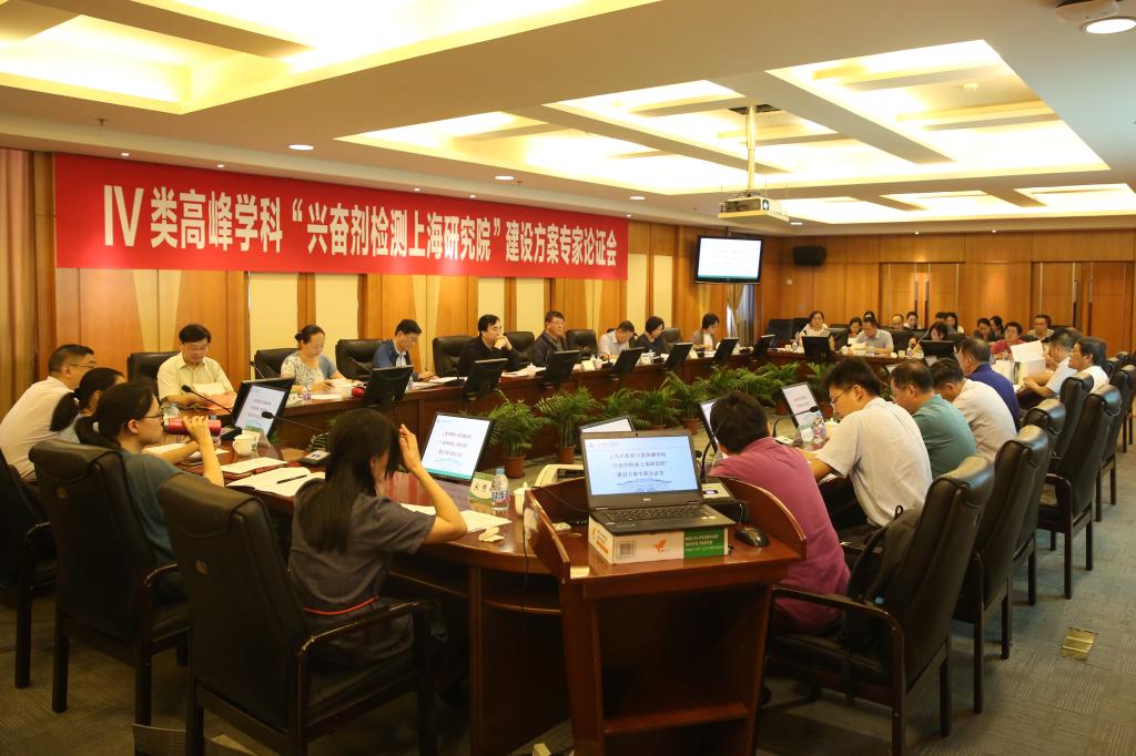 本网讯 7月27日下午,上海市教委IV类高峰学科“兴奋剂检测上海研究院”建设方案专家论证会在红足一1世图文信息楼第一会议室举行。论证会议程为专家预备会、听取汇报方案、提问答辩、专家论证和集中审议。