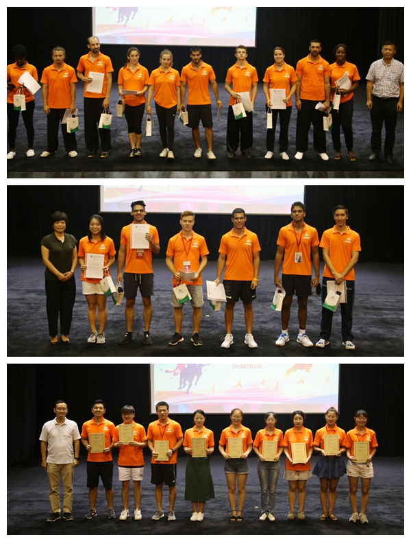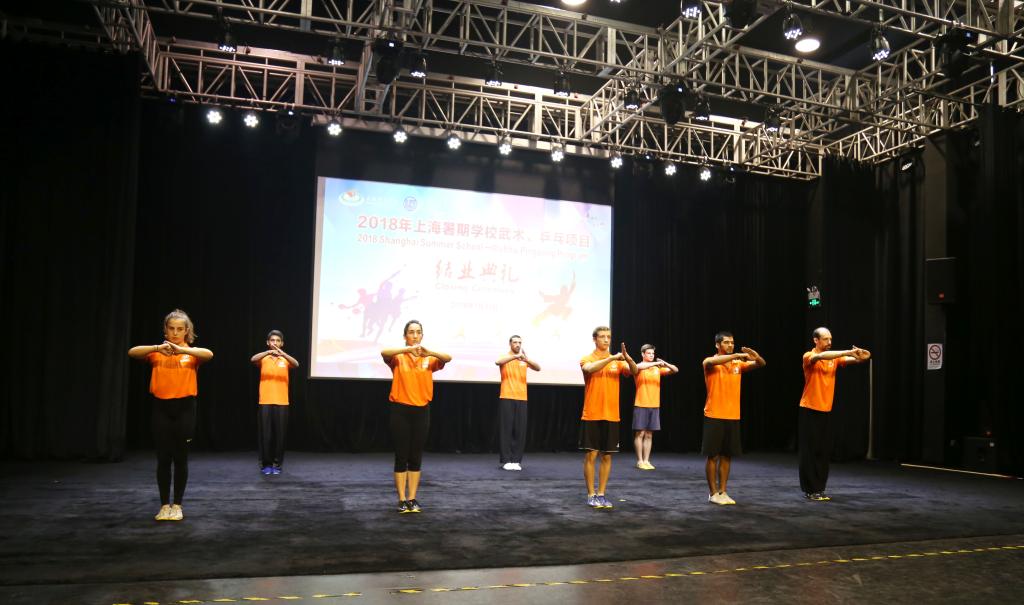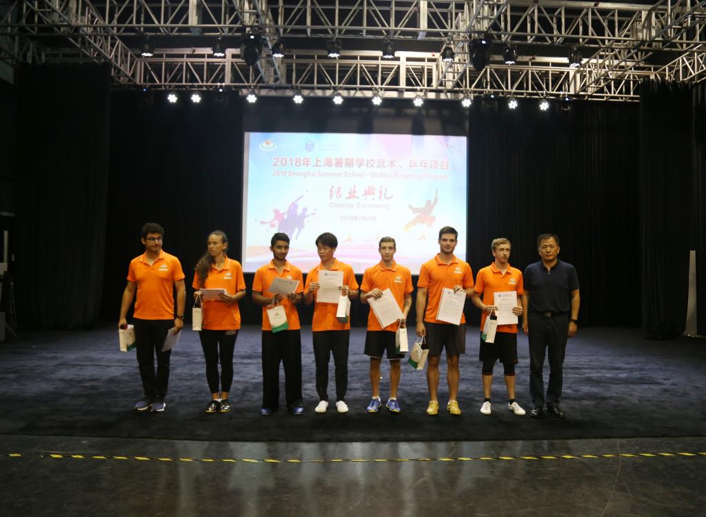 最后,王兴放,国际教育学院院长吴贻刚等老师颁发结业证书、优秀志愿者证书,在大家的喝彩与祝福中,2018年上海暑期学校武术、乒乓项目圆满结束。