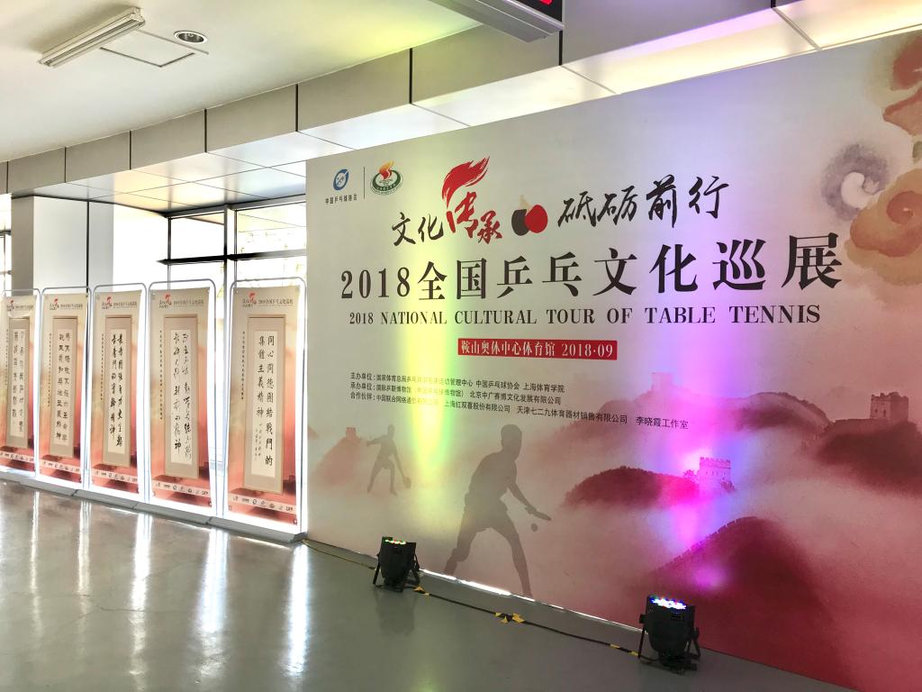 本网讯 9月1日,“一带一路”国际乒乓球邀请赛在鞍山市奥林匹克中心体育馆举行,由国家体育总局乒羽中心、中国乒乓球协会、上海体育学院主办,国际乒联博物馆和中国乒乓球博物馆、北京中广赛博文化发展有限公司承办的“文化传承 砥砺前行”2018全国乒乓文化巡展鞍山站也火热展开。
