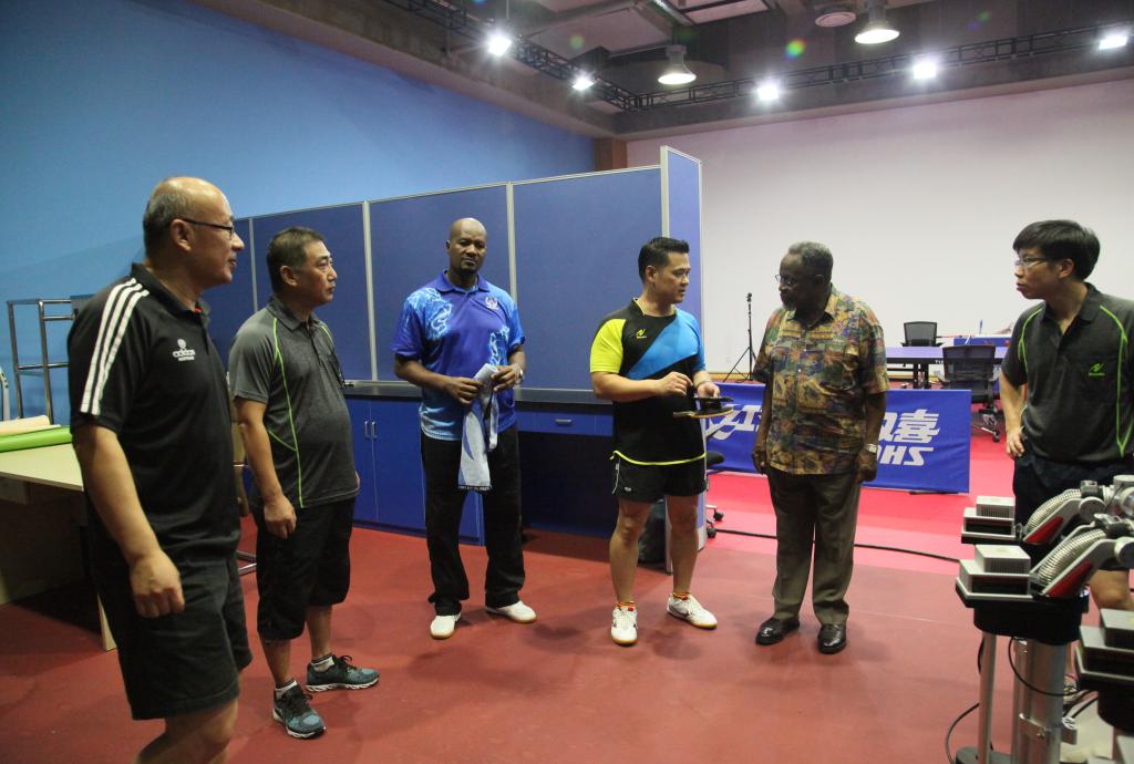联合国乒乓球俱乐部主席黄武耀、联合国乒乓球俱乐部副主席帕帕·佛(Papa Fall)等联合国乒乓球俱乐部成员一行参观中国乒乓球学院并与中乒院青少年运动员进行了交流。