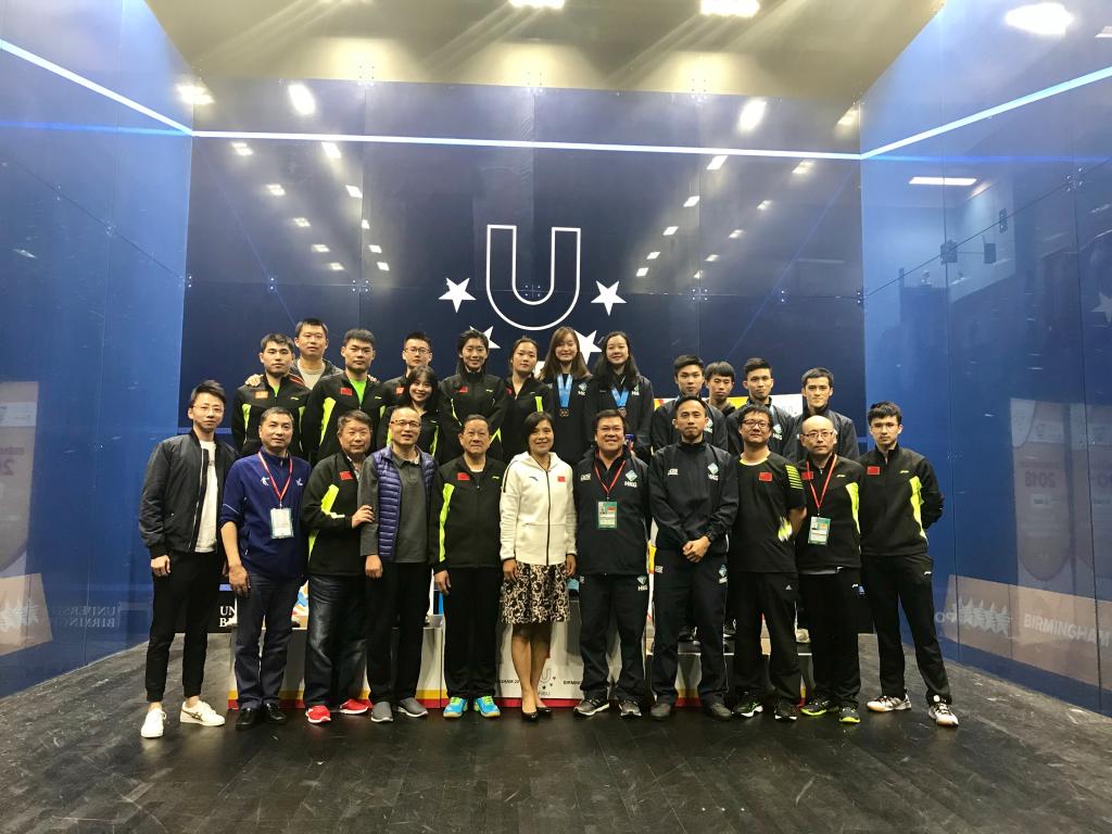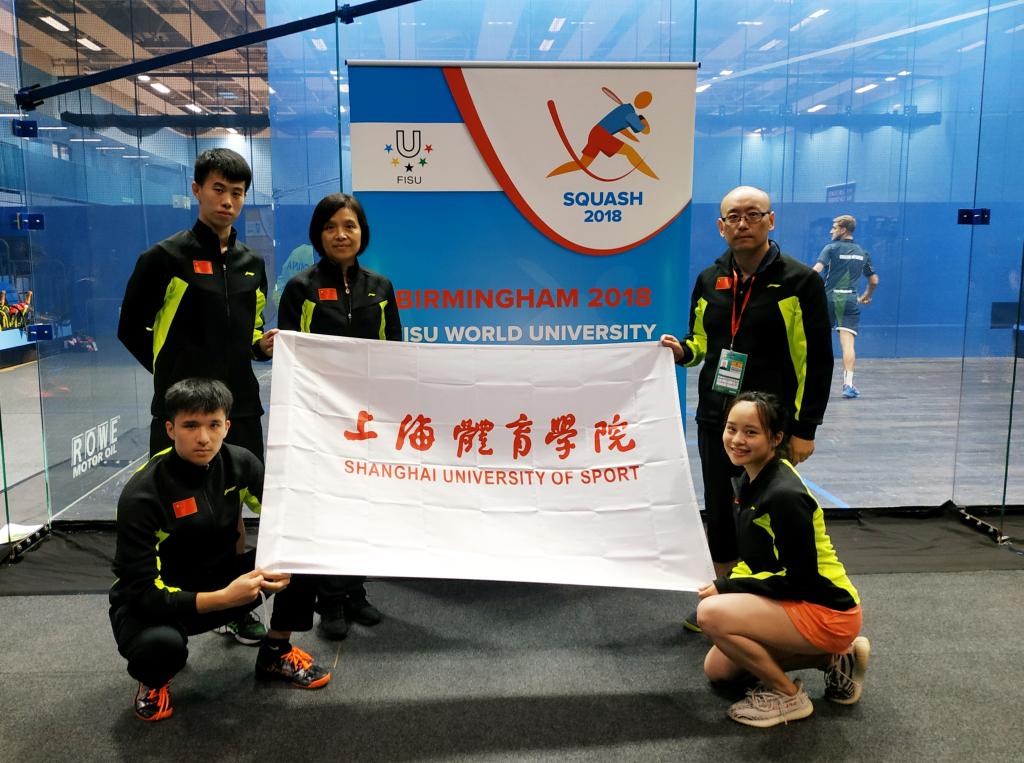 本网讯 由国际大学生体育联合会(FISU)组织的第10届世界大学生壁球锦标赛于9月5日至12日在英国伯明翰大学举行。中国大学生壁球队由中国大学生体育协会副主席、上海体育学院副院长毛丽娟教授担任团长、八名来自上海体育学院、南京体育学院、北京大学和合肥学院的大学生运动员组成。红足一1世体育教育训练学院运动训练专业学生梁骏(15级)、段思羽(16级)、周志弢(17级)作为主力选手参加了个人及团体赛事。
