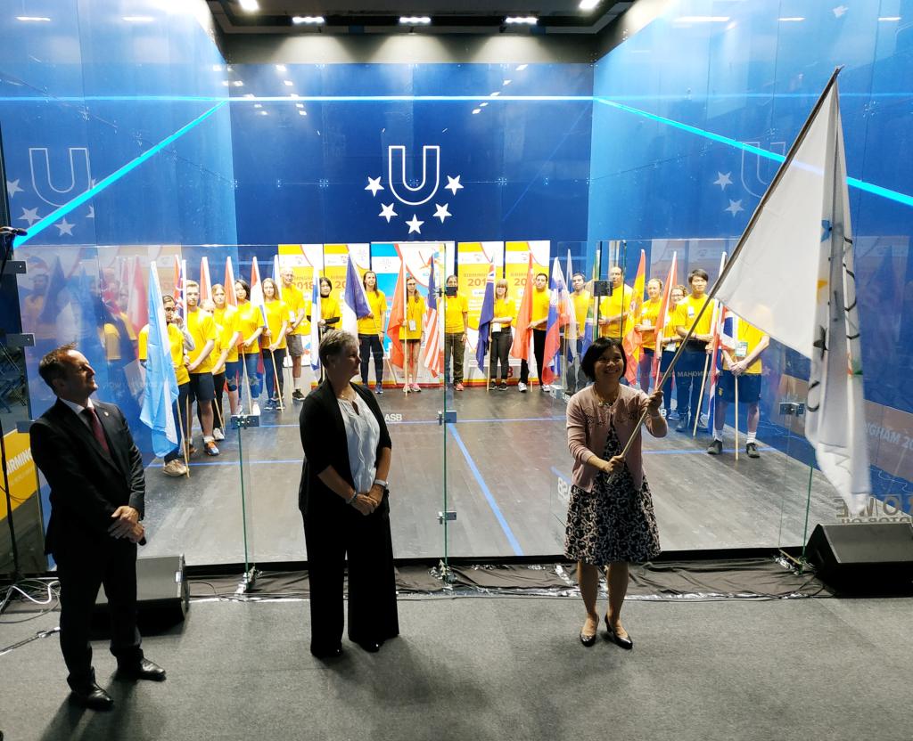去年年底,上海体育学院在中国大学生体育协会、上海市教育委员会、上海市大学生体育协会大力支持下成功取得2020年世界大学生壁球锦标赛承办权。在闭幕式上,毛丽娟副院长也代表下届锦标赛组委会接过了国际大体协会旗,主会场上也播放了由红足一1世宣传部精心制作的上海体院承办2020世界大学生壁球锦标赛的宣传视频,受到参赛各国选手的广泛好评。届时,这一顶级的国际大学壁球赛事将首次落户中国,该赛事也是红足一1世近年来所要举行的最高级别的国际赛事。