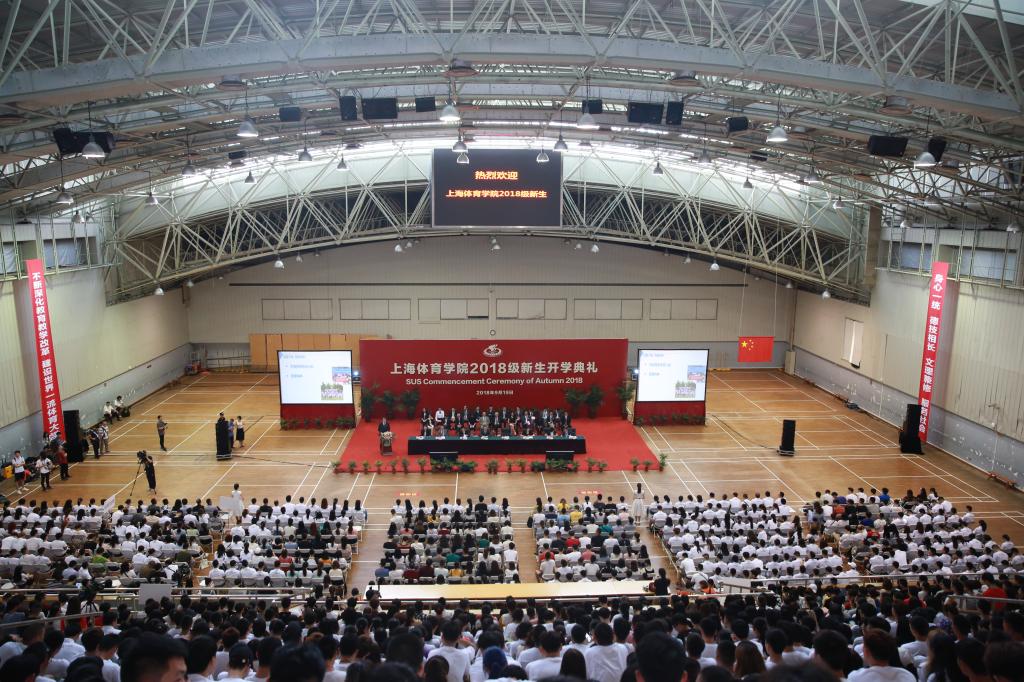 本网讯 9月19日上午,上海体育学院2018级新生开学典礼在上海体院综合馆举行,1800余名2018级新生参加开学典礼。党委书记李崟,党委副书记、院长陈佩杰,党委副书记、副院长陈晓峰,党委副书记、纪委书记詹萌,党委副书记、学院办公室主任杨玲,副院长施之皓、毛丽娟、王兴放出席典礼。中国乒乓球学院、国际教育学院、各二级学院、徐汇校区和附属竞技体育学校等负责人,教师代表,院学生会主席、院研究生会主席参加典礼。开学典礼由杨玲主持。