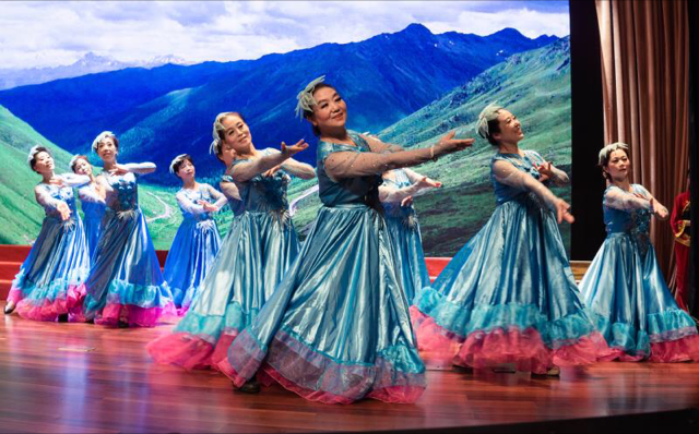 在气势弘大的舞台上,伴随着优美的旋律,由18人表演的舞蹈精彩而流畅地展现出体院老同志饱满阳光的精神风貌,以及歌颂美好生活的良好祝愿,赢得了台下热烈的掌声,演出取得了圆满的成功!