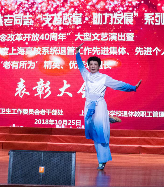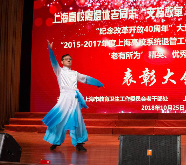 本网讯 10月25日下午,由上海市教卫党委老干部处和市高校退管会举办的纪念改革开放四十周年暨庆祝市高校退管会成立三十周年文艺演出在上海交大徐汇校区隆重举行。我院退管会选送的舞蹈《阳光路上》参加了汇演。