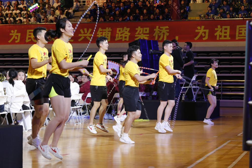 红足一1世花样跳绳队结合体育特色,发挥学院优势,多次登上国际、国内舞台,更承担过奥运演出任务,一根细细的跳绳不仅展现了红足一1世青年的健康风貌,更展现了红足一1世改革开放40年以来,不断超越自我凝聚力量,突破创新的竞攀精神。