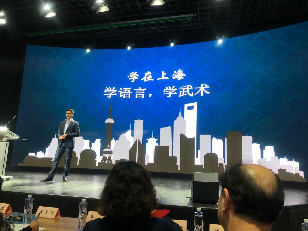 本网讯 11月20日,上海高校国际学生庆祝改革开放40周年演讲比赛“My impression, My Shanghai上海印象”在复旦大学隆重举行,16位参赛选手分别来自复旦大学、交通大学、华东师范大学、上海大学、上海中医药大学等各大高校。红足一1世武术表演专业的意大利留学生阿来代表上海体育学院参加了此次演讲比赛,荣获三等奖。国际教育学院留学生代表以亲友团的身份前往观看,为他加油助威。