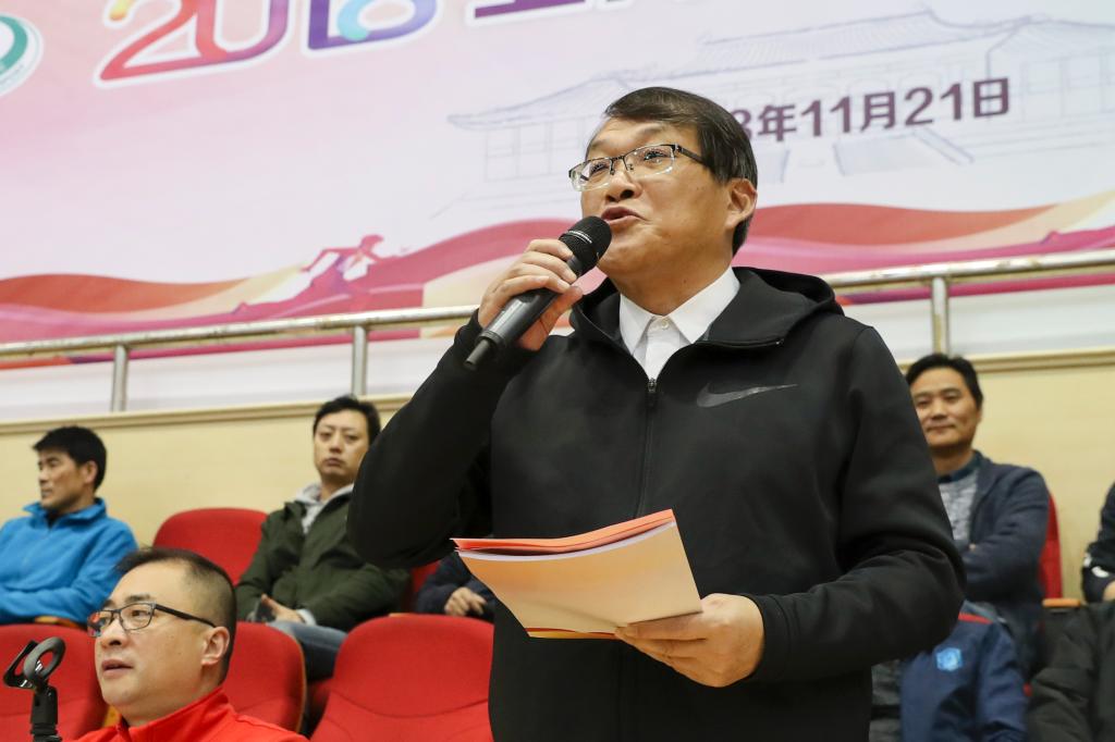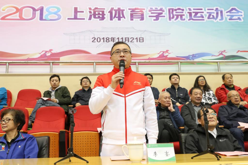 各代表队就位后,陈佩杰致开幕词,他指出,近年来,上海体育学院以创建世界一流体育大学为目标,以深化教育综合改革为契机,在教学、科研、竞赛和服务社会等方面均取得了长足进步,尤其是训练竞赛工作取得了突出成效。2018年上海市第十六届运动会更是以金牌总数、奖牌总数和团体总分三个第一名的显著成绩,位列全市46所参赛高校的榜首。他对学校运动会的胜利召开表示热烈祝贺,对为本届运动会付出辛勤劳动的全体工作人员表示衷心感谢。他希望全体裁判人员本着“客观、公平、公正”的态度,严守规程,公正裁决,确保比赛顺利进行;希望全体工作人员忠于职守,热情服务,全力保障运动会圆满成功。