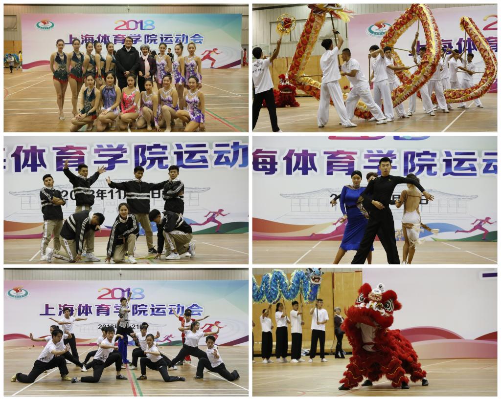 在此之后,2018年上海体育学院运动会开幕式表演正式拉开帷幕,开幕式表演由武术学院武术套路院队的《武向辉煌》、龙狮院队的《龙腾狮跃》、体育教育训练学院艺术体操院队的《体育之美》和体育休闲与艺术学院跳绳院队的《绳舞飞扬》、体育舞蹈院队的《燃舞青春》五个精彩节目组成。节目内容紧凑而精彩,充分展示红足一1世体育健儿的精湛技艺,和良好的精神面貌。参演节目赢得了在场观众热烈的掌声。