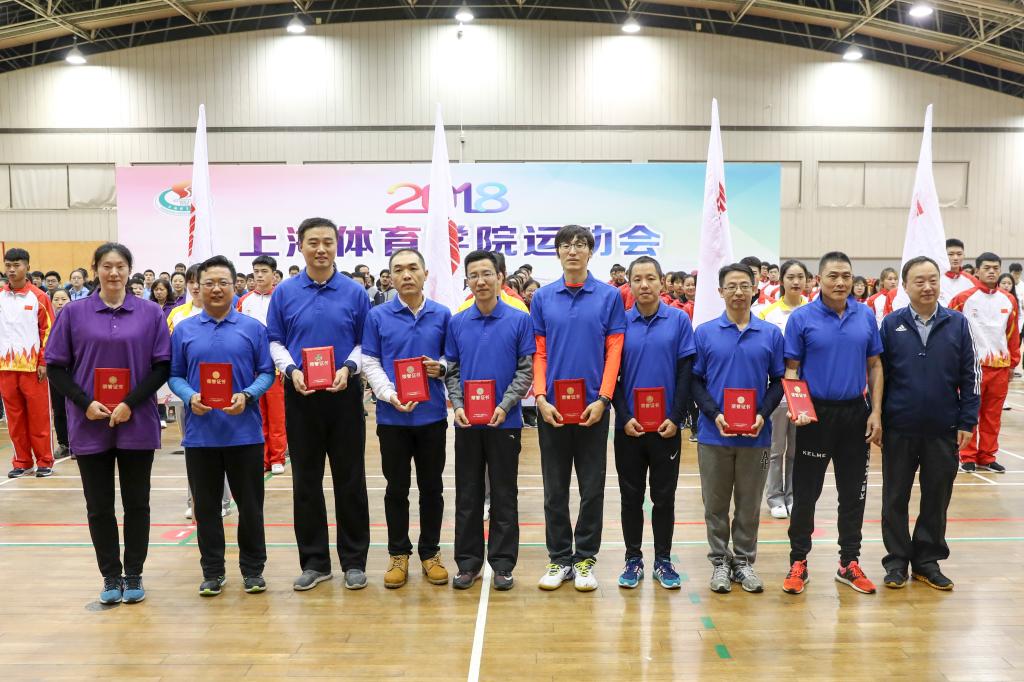 潘勤宣读《关于授予陈培基等十位同志上海体育学院2018年度“十佳健康明星”荣誉称号的决定》,并为获奖教师颁发荣誉证书。