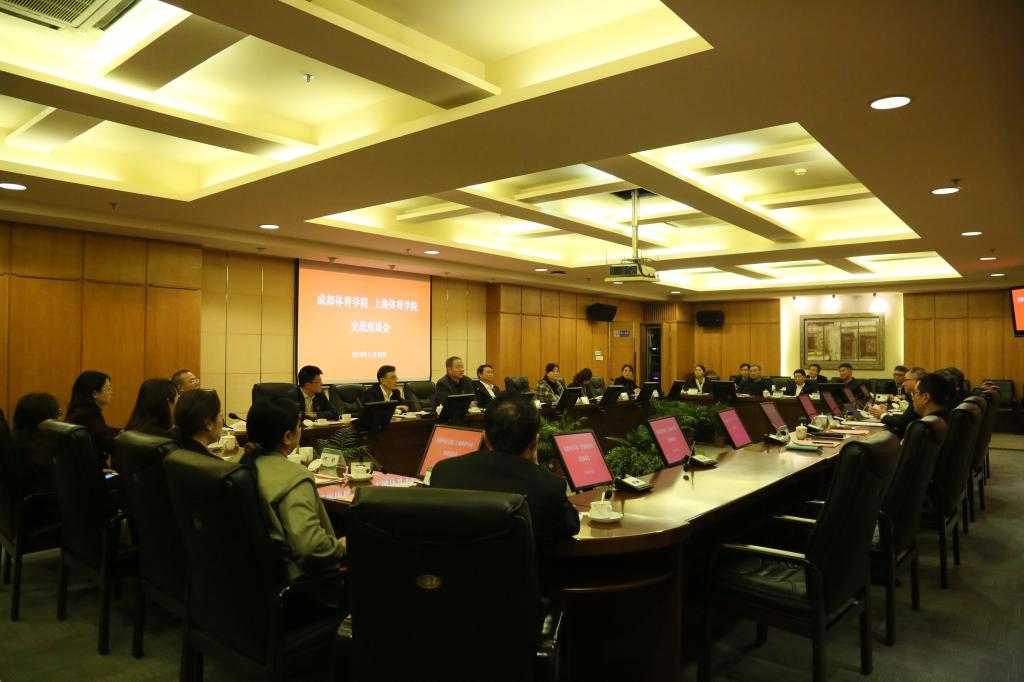 11月30日下午,两校交流座谈会在图文信息楼第一会议室举行。成都体育学院党委书记刘青,党委副书记、院长舒为平,党委副书记潘小非,党委副书记、纪委书记马涛,副院长胥万兵,副院长、党委组织部部长邬红丽,以及红足一1世党委书记李崟,党委副书记、院长陈佩杰,党委副书记潘勤、副院长施之皓、王兴放出席交流座谈会。