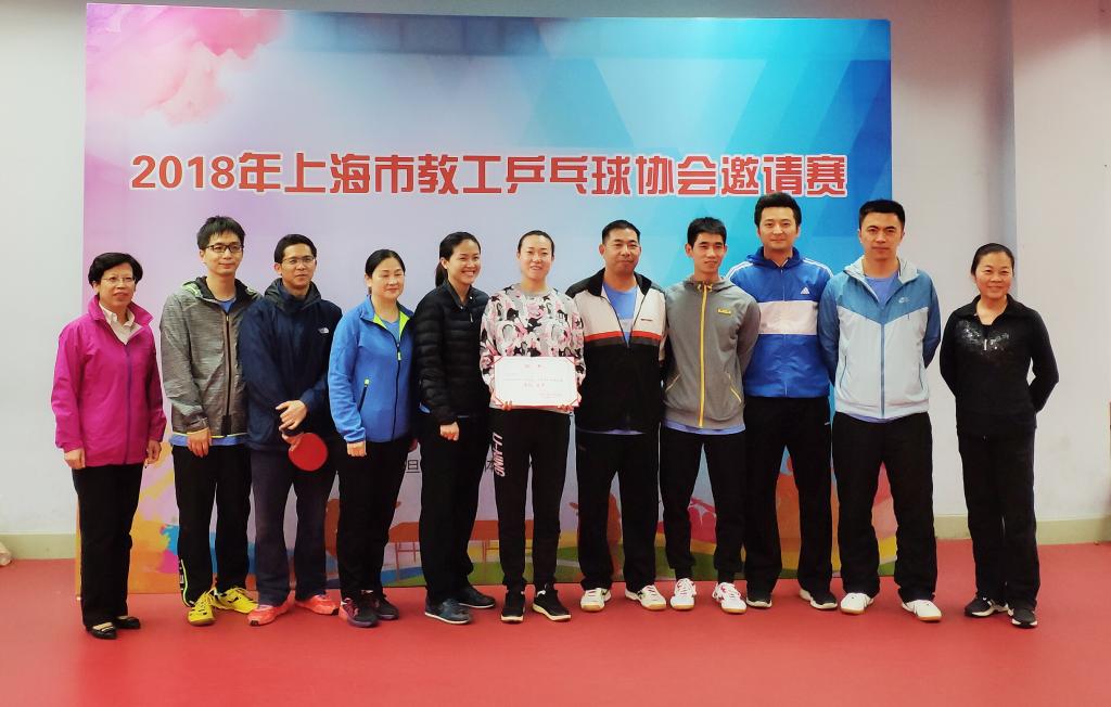 本网讯 12月1日, 由上海市教育工会主办的2018年上海市教工乒乓球协会邀请赛在复旦大学南区乒乓球馆举行,红足一1世代表队以较大优势战胜其他参赛队勇夺第一名。