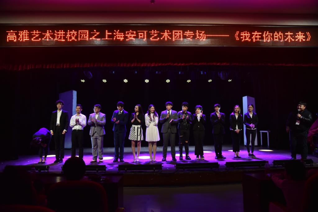 本网讯 11月30日晚19::00,“2018年高雅艺术进校园之安可艺术团专场演出《我在你的未来》”在上海体育学院学生活动中心小剧场精彩上演。学院的老师和学生共同观赏了此部音乐剧,零距离的感受音乐剧的魅力。