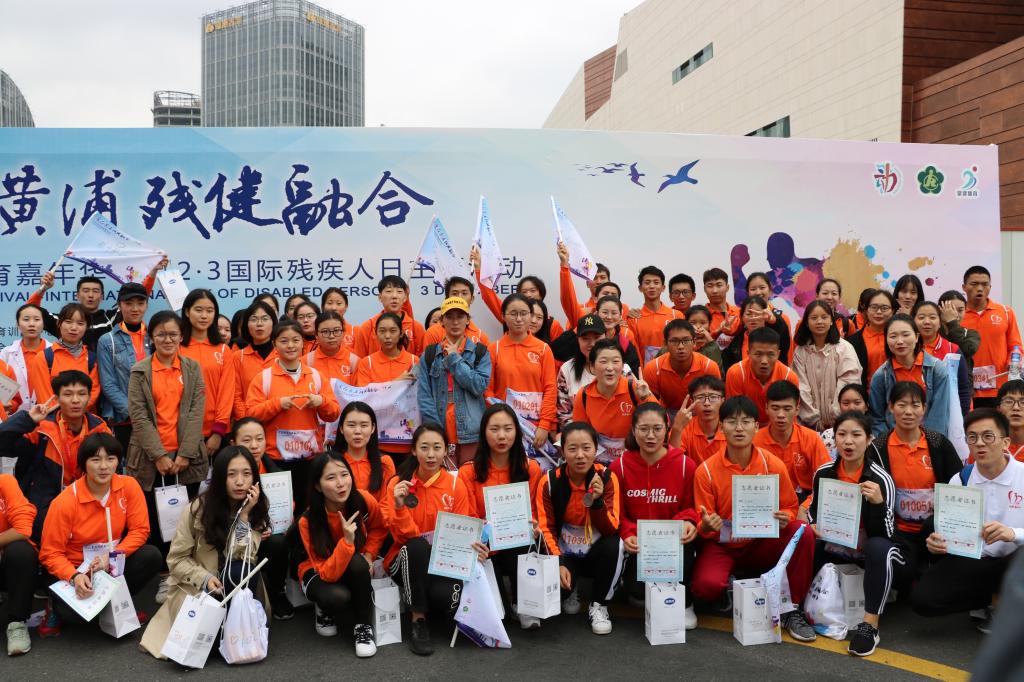 本网讯 12月2日,“爱在黄浦 残健融合”体育嘉年华活动在上海世博黄浦体育园举行,这是黄浦滨江地区开展的首次运动无障碍体育盛会。本次活动共分三个线路、五个组别、140支队伍,共计480人参与本次活动。上海市体育局副局长赵光圣,上海市残疾人联合会副理事长郭咏军,黄浦区人民政府副区长李原,黄浦区人民政府副区长左轶梅,上海体育学院副院长、中国乒乓球学院院长施之皓出席活动。红足一1世共派出69名志愿者参与本次活动的服务,为聋人组的赛事保驾护航。