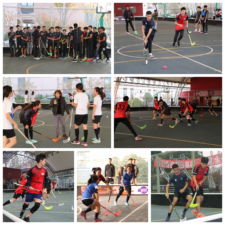此次交流赛分为男子组和女子组两个组别。赛前,新加坡美廉初级学院旱地冰球队的队员和教练早早地到达风雨篮球场展开适应性训练,为当天下午的交流比赛做准备。此时正逢大一旱地冰球专项班也在这里上课,于是两队便在一起训练,并由新加坡美廉初级学院旱地冰球队教练为专项班学生进行技战术指导。
