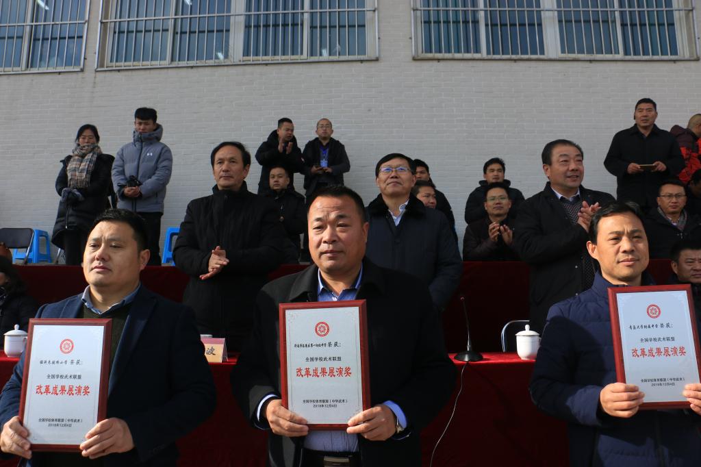 会议伊始,由齐鲁师范学院教务处梁承锋处长颁发优秀教改视频二等奖,天津体育学院竞技体育学校丁保玉校长、广州体育学院武术学院李朝旭院长、山东体育学院武术学院王美娟院长共同颁发优秀教改视频三等奖。