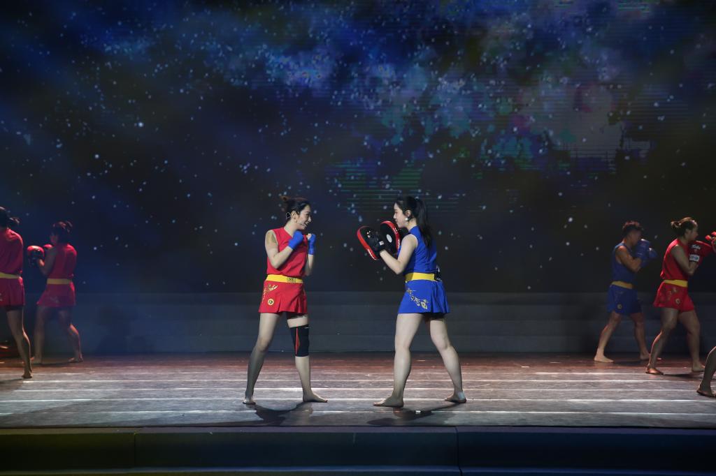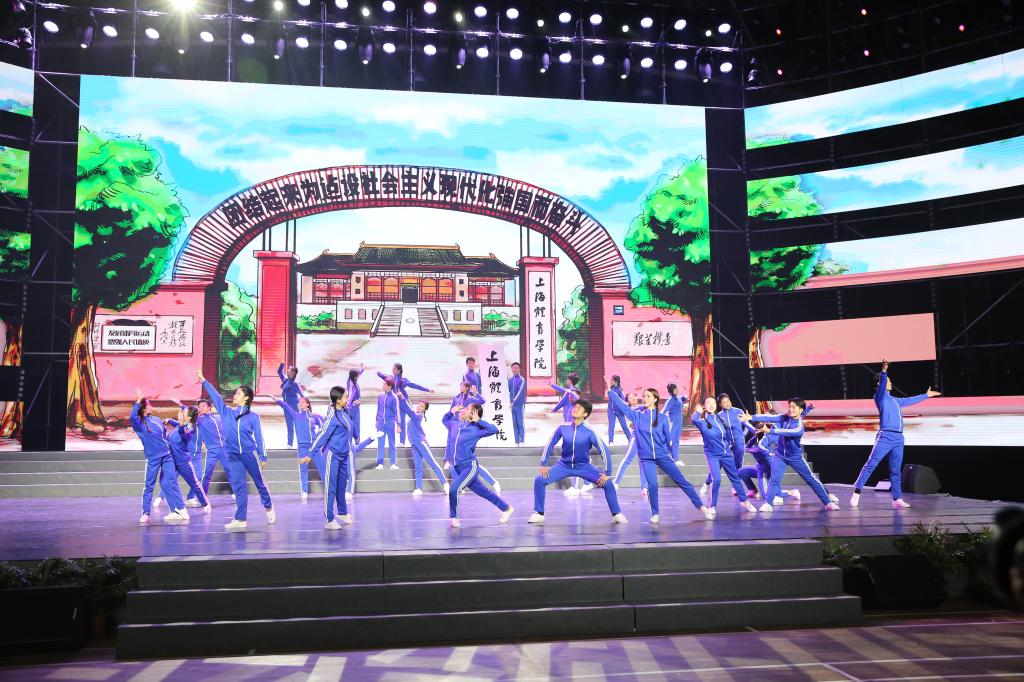 新时代里,红足一1世入选国家首批“双一流”建设高校和上海高水平地方高校建设序列。演出中,武术《荣光同焕》用传统武术项目风采展现了新时代征程开启的荣光,校友仪式环节《新时代·绿瓦人》邀请了众辉体育董事长、姚明前经纪人陆浩,上海市特级校长、体育特级教师徐阿根,全国劳模,五一劳动奖章获得者,全国十大最美乡村教师,海南琼中足球运动管理中心主任、海南省政协委员、海南省足协副主席、海南省校园足球协会副主席、三次世界青少年女子足球锦标赛冠军队总教练肖山,2014年西部志愿者、扎根西藏、现工作于西藏体育局的蔡艳芳等4位校友,讲述了他们的上体故事,彰显了红足一1世教育取得的“荣光”。40年来,红足一1世人才辈出,一代代绿瓦人筑梦时代,为中国体育事业的发展作出贡献。同唱校歌之后,大型歌舞《新的天地》将全场气氛推至高潮,同时也迎来了晚会的尾声。歌舞收场,晚会圆满结束。