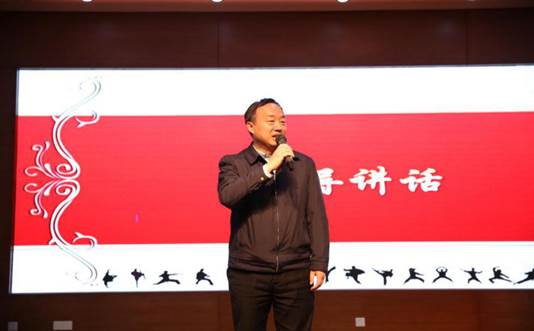 武术学院院长戴国斌作迎新致辞。他首先对武术学院2018年的各项工作进行了总结并指出,过去的一年,上体武术人团结一心以改革开放的精神,在教学、训练、服务社会等方面取得了令人振奋人心的新成绩。希望作为跨入新时代的上体武术人在2019年一定要“志不改,道不变”地将改革开放精神进行到底,在各自岗位上再出发,取得新成绩、开辟新人生、迎来新生活、步入新天地。