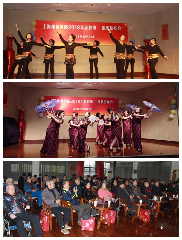 26日,院老教协、退教协年会热烈召开。120余名协会会员陆续来到五楼会议室。协会副长王培锟教授做工作总结。党委副书记潘勤到会祝贺,并向老教授们介绍了学院2018年党建、“双一流”建设、运动竞赛、人才培养等方面取得的成就。他说,学校有今天的成就,是几代上体人努力的结果,同在坐各位老同志是分不开的。他还代表学校党委向退休老同志、老教授们祝贺新年快乐!身体健康!家庭幸福!总结会后,进行了文艺表演。戴光裕教授一首《我爱你中国》的男声独唱,拉开了表演的序幕。接着会员们自娱自乐,有的表演了《自夸》三句半、《荷花颂》旗袍走秀、舞蹈、太极拳表演及《快乐老家》表演唱等节目博得了阵阵掌声。节目表演中,还穿插猜谜语活动。院退休党总支书记、退管会常务副主任李芳参加。会议由副会长兼秘书长孙华钱主持。
