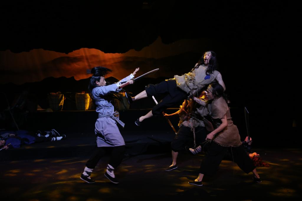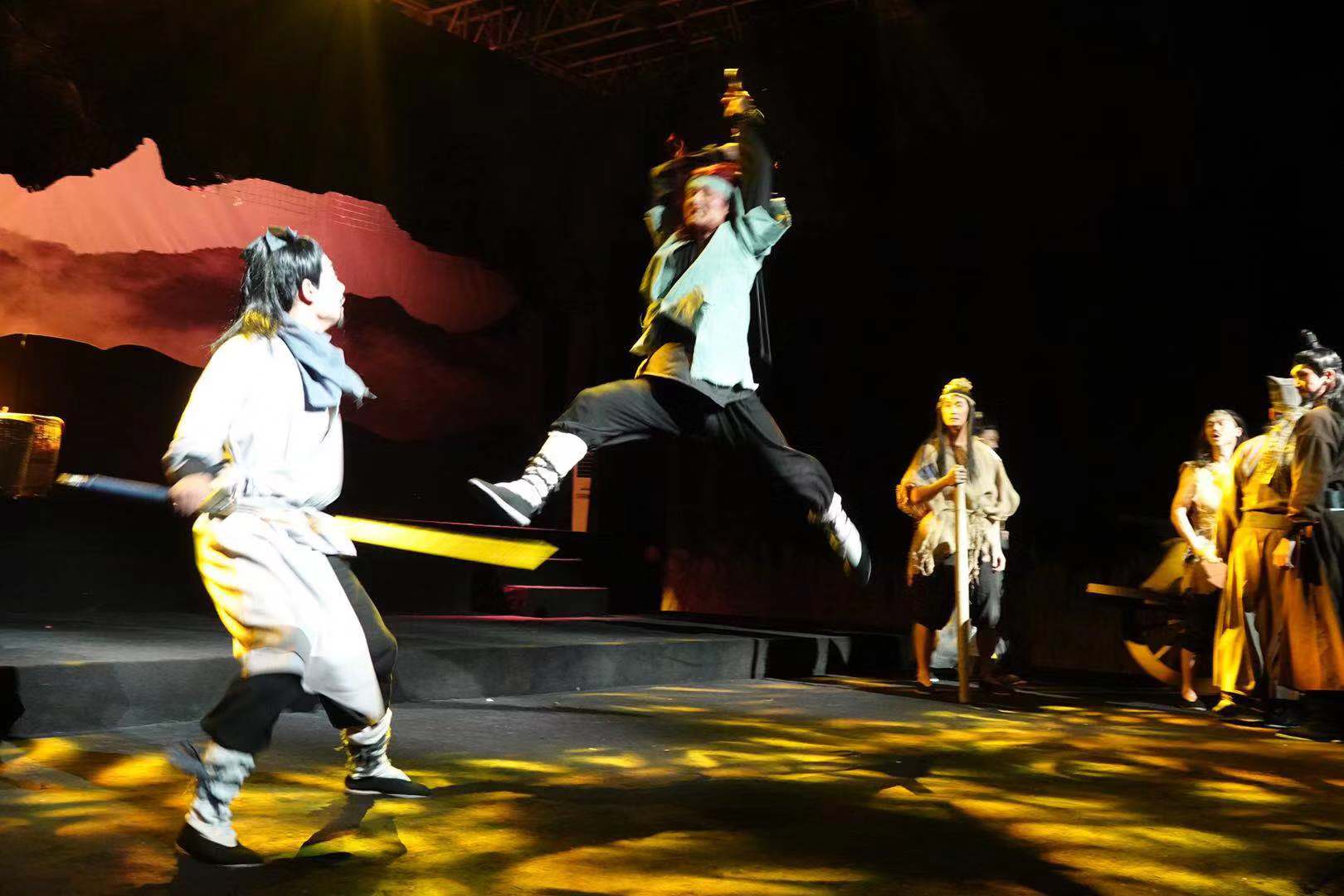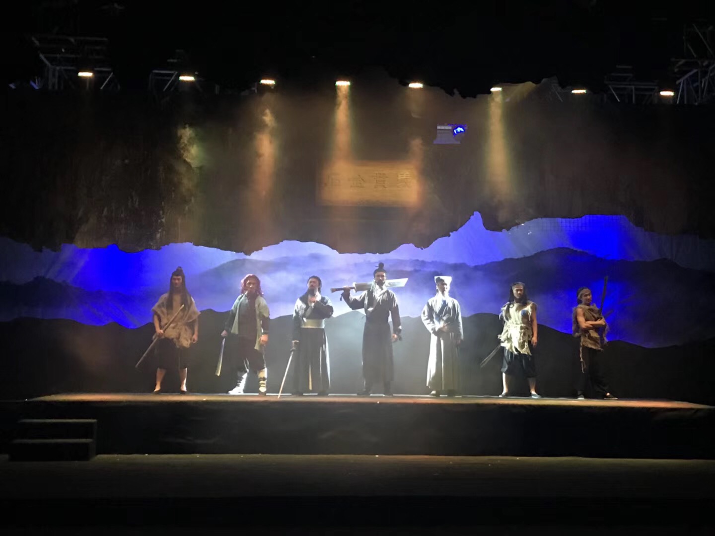 本网讯 12月24日晚,在热烈的掌声与欢呼声中,在鲜花的簇拥下,在欢庆泪水的浸润里,上海体育学院原创舞台剧《水浒新传之生辰纲》首轮演出,在黑匣子实验剧场圆满落下了帷幕。党委副书记潘勤、副院长毛丽娟,武术学院顾问王培锟先生、邱丕相先生,上海体育学院相关职能部分领导、武术学院师生,以及上海戏剧学院、上海音乐学院、上海师范大学、上海大学等兄弟院校,上海话剧中心、开心麻花、安可艺术团等剧团,鸣锣影业、发梦灵影业、优睿传媒等文艺企业,出席了本次首轮四场演出。