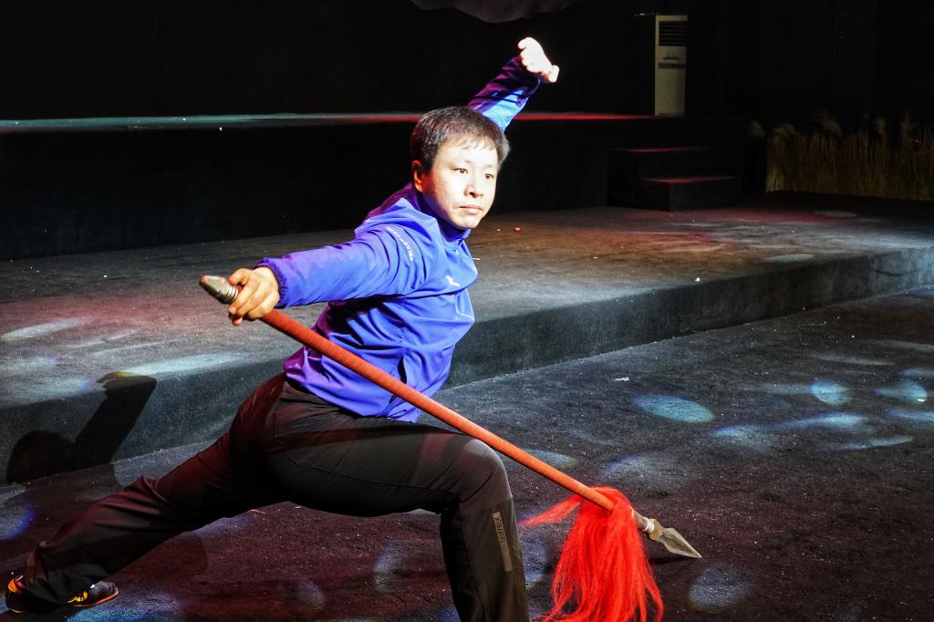 《生辰纲》作为上体武术表演的首部原创大作,自然融入了中华文化绚丽瑰宝——武术。“这次尝试对我来说富有挑战性,因为‘武戏’是本剧关键亮点之一,但也极为复杂甚至是危险。区别于一般的武术对练和武术表演,本剧动作编创需要以剧本为核心,结合角色特质、情境设置,符合时代特征。水浒的故事是发生在宋朝,光是确定兵器样式和武术动作形态就花费了大量的精力和时间。且排练时间零碎、紧迫,演员的压力也十分巨大。”动作导演王继强老师说,“我们希望最终呈现给观众的是生动的,活灵活现的打。希望能做到精彩纷呈、目不暇接,最终能以武术助推戏剧到节奏,真正做到武艺融合”。