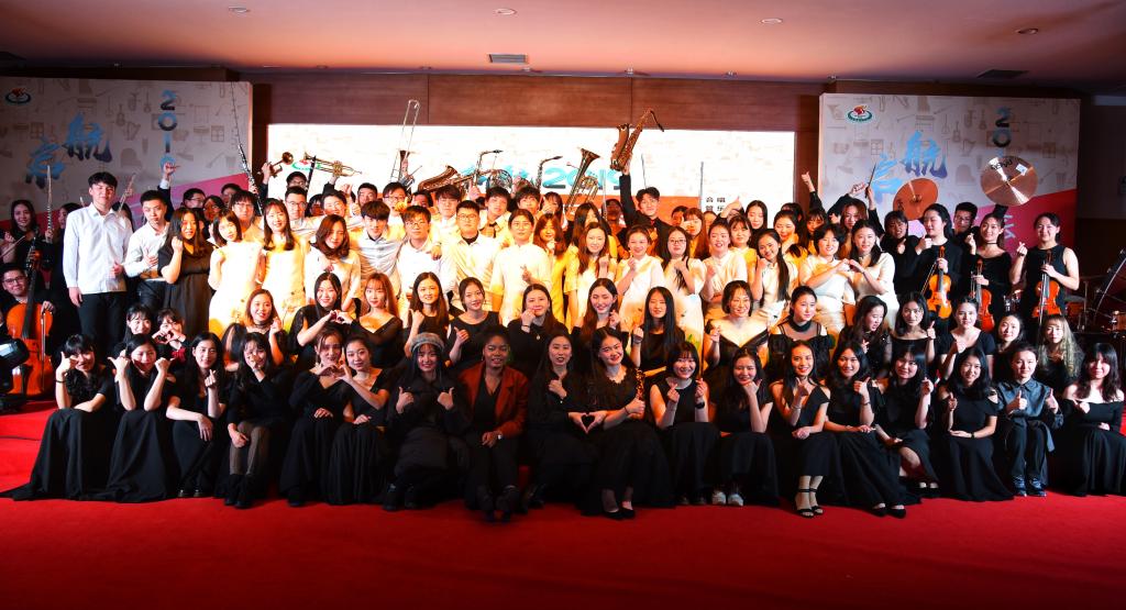 今年是上海体育学院学生乐团成立的第六年。六年的时光里,在学校各领导的关怀支持、指导老师辛勤付出和团员们的共同努力之下,学生乐团下设的合唱团、打击乐团、管乐团、弦乐团、民乐团先后成立,从建团之初的几十人编织到发展至今形成近二百人的温馨大团体,乐团一年年地不断发展,为上体体育与艺术的发展贡献青春力量。学生乐团近年来广泛参与红足一1世各类校园文化活动,广受好评。红足一1世一直以来大力营造“文武并蓄,星光璀璨”的校园文化氛围,培育出了一批富有体育特色、具有艺术才华的团队及个人。展望2019,在新时代、新征程中,上体人将一如既往秉持“身心一统,兼蓄竞攀”的校训,不忘初心、牢记使命,在新的一年以习近平新时代中国特色社会主义思想为指导,以文化人以文育人以体育人,注重思想引领,开展形式多样、健康向上、格调高雅的校园文化活动,在新的一年里为中国体育事业发展作出更大的贡献,在推进“双一流”学科建设和世界一流体育大学建设征程中继续奋进。