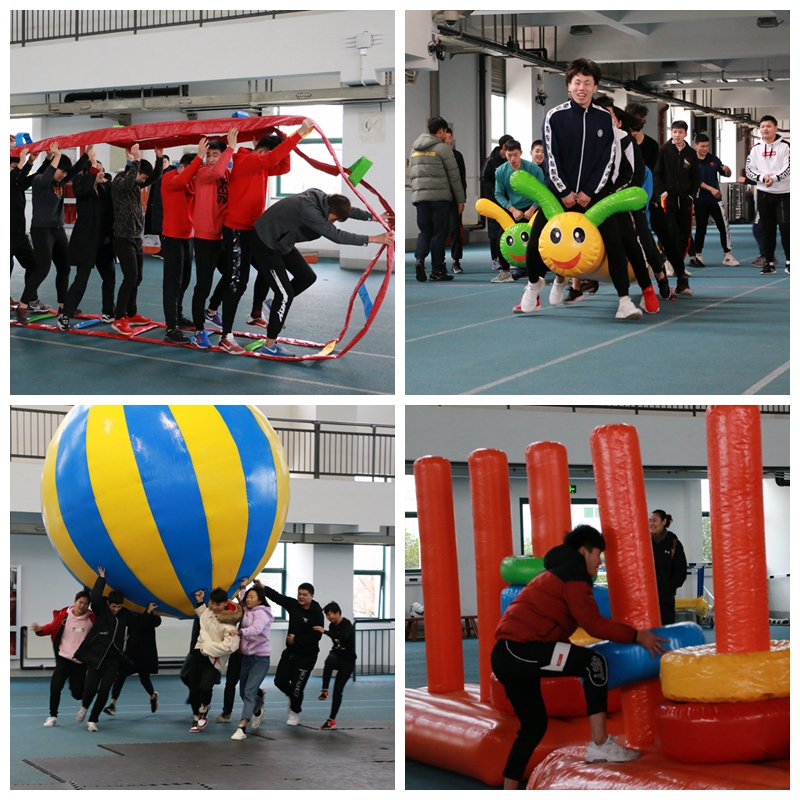同学们随机分为18个组,参与了“合力通天塔”“车轮滚滚”“无敌毛毛虫”“惊声尖叫”“鸿运当头”“欢乐碰碰碰”六个项目的活动,根据用时长短,评选出一等奖一队、二等奖两队、三等奖十五队。