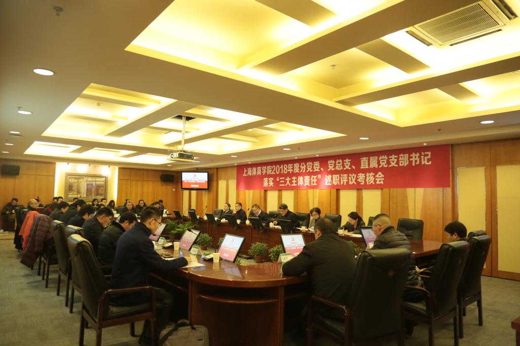 中国乒乓球学院分党委、体育教育训练学院党总支、原体育新闻传播与外语学院党总支、运动科学学院党总支、退休党总支等5家二级党组织书记围绕履职尽责情况、存在问题、下一步工作思路和举措三块内容作了现场述职。