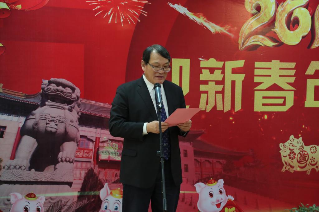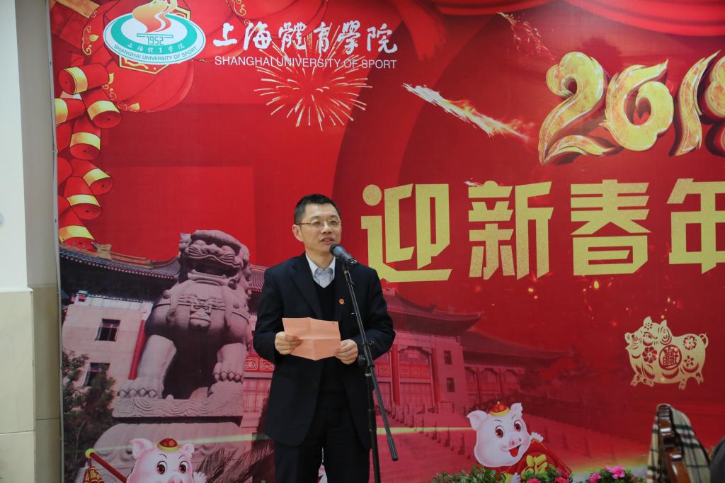 陆靖发表了热情洋溢的讲话,他肯定了学校一直以来的各项事业的突破和长足的发展,希望学校全体师生共同努力,为上海教育事业,体育事业和学校事业发展做出积极贡献。最后学工部部长熊小健邀请大家共同举杯,同庆猪年的到来。