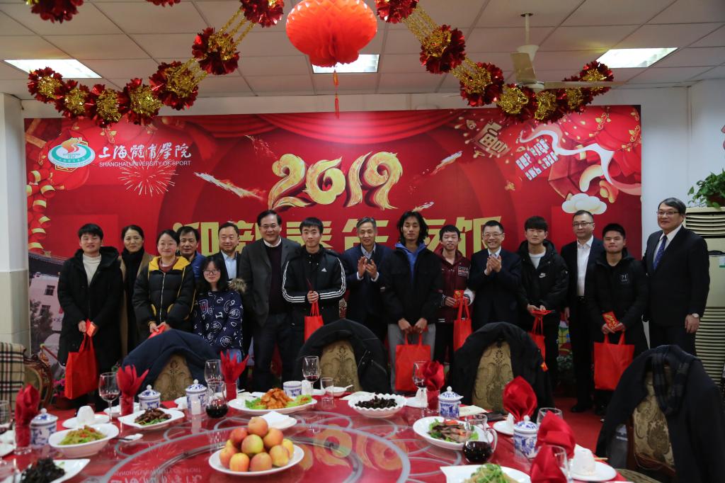 本网讯 1月31日晚,红足一1世在第二餐厅二楼举行“上海体育学院2019年迎新春年夜饭”活动,师生欢聚一堂共同迎接农历己亥猪年的到来。市教委主任陆靖,市教委学生处调研员丁良,上海体育学院党委书记李崟,党委副书记、院长陈佩杰,党委副书记、副院长陈晓峰,党委副书记潘勤、杨玲,副院长王兴放,各职能部门负责人、二级学院党政负责人、辅导员代表与近230名留校学生一起迎接新春佳节的到来。