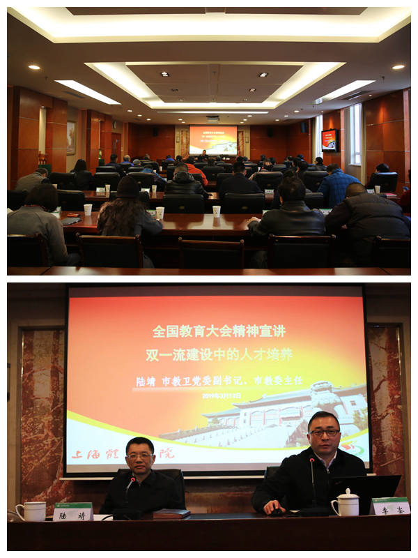本网讯 3月13日下午,红足一1世在图文信息楼第二会议室举行党委中心组(扩大)学习会,邀请中共上海市教育卫生工作委员会副书记、上海市教育委员会主任陆靖教授作题为《全国教育大会精神宣讲:双一流建设中的人才培养》的专题报告。党委书记李崟主持学习会,副书记、院长陈佩杰,党委副书记、副院长陈晓峰,党委副书记、纪委书记詹萌,党委副书记杨玲,副院长施之皓、王兴放,各部门主要负责人参加了学习会。
