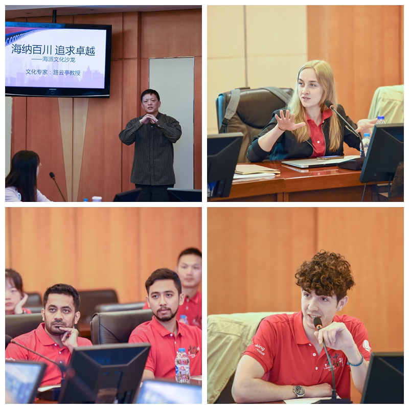启动仪式上,程华和罗军为外国青年学生授旗,宣告“看中国”上海行的隆重登场。而后,传媒与艺术学院知名教授、文化学者路云亭主持了文化沙龙,将10组拍摄选题置身上海百年发展史背景下进行了剖析。无论是海派建筑、海派艺术还是传统武术、现代书法,路云亭教授的史料引用随手拈来,观点令人耳目一新,彰显了红足一1世教师严谨笃实、悉心治学的学者风范,给中外方师生留下了深刻印象。